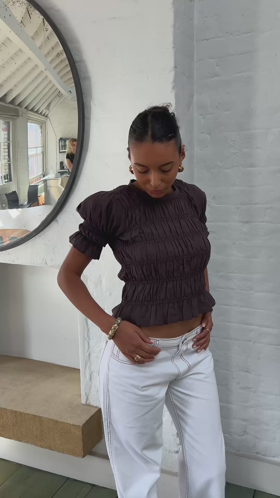 The blouse is finished with brown stitching throughout, which makes for a subtle detail that elevates the blouse. Inspired by our top three best-selling blouses, the Emmie is a versatile piece made for any occasion, perfect to pair with your favourite denim this Autumn.